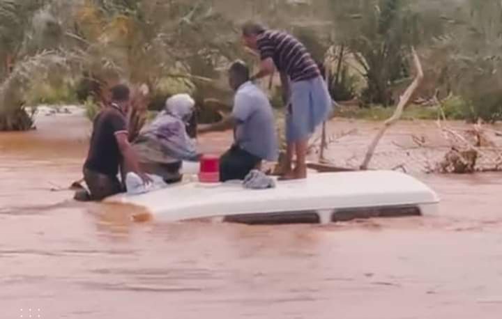 وحاصرت مياه السيول السيارة التي كان على متنها أربعة أشخاص من بينهم ممرضة بصالة الحدائق في حي الأطر.