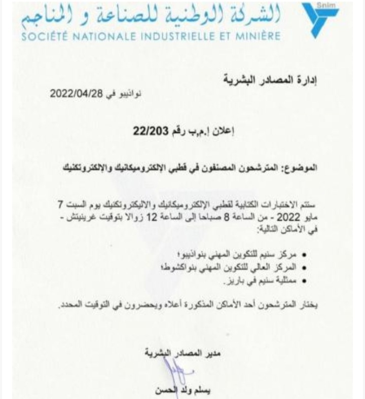 أعلنت الشركة الوطنية للصناعة والمناجم عن تصنيف المترشحين الاكتتاب المعلن عنه مؤخرا، إلى قطبين أحدهما للإلكترو ميكانيكا والآخر للإلكترو تكنيك.