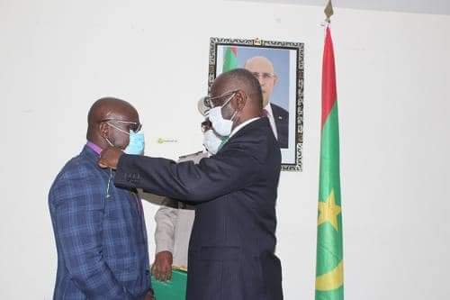 وشح معالي وزير الشؤون الخارجية والتعاون والموريتانيين في الخارج، السيد محمد سالم ولد مرزوك، باسم فخامة رئيس الجمهورية السيد محمد ولد الشيخ الغزواني، اليوم الخميس بقاعة الاجتماعات بمقر الوزارة في انواكشوط، بوسام كوماندور